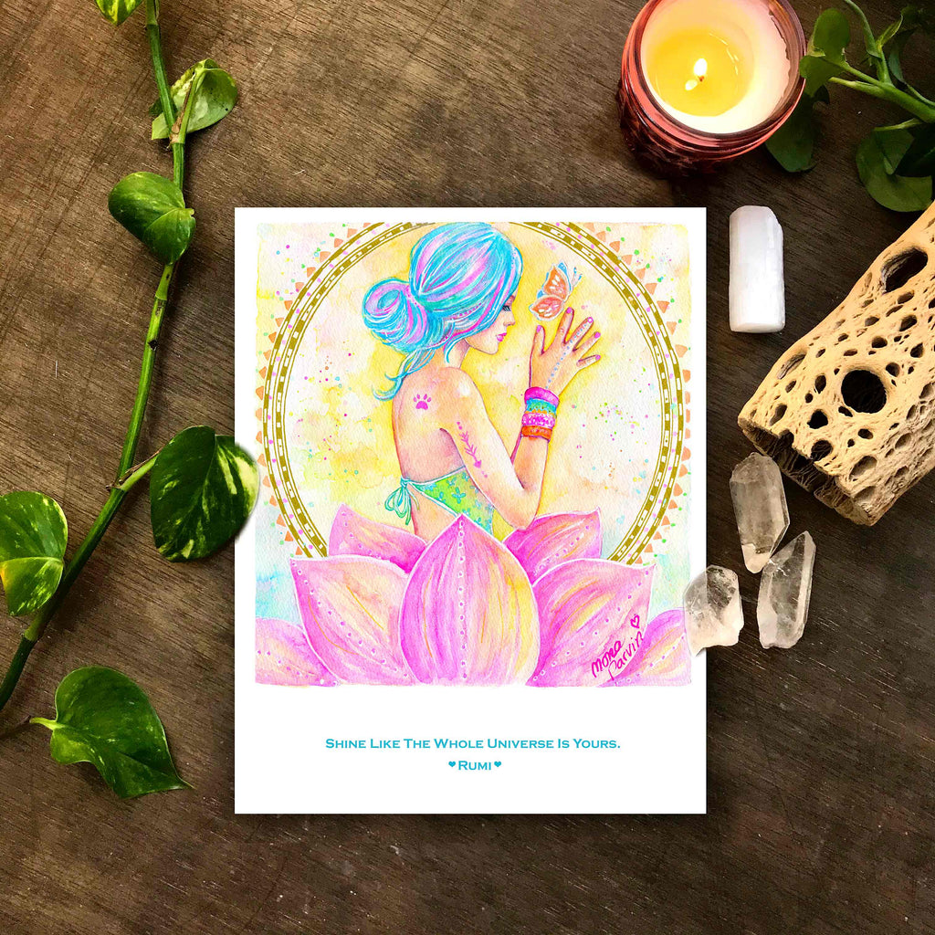 8.5 x 11 inch Giclée Print is printed using archival Epson UltraChrome K3 inks, on archival 167 gsm Epson Matte paper. Packaged carefully in a plastic sleeve and a rigid cardboard backing.